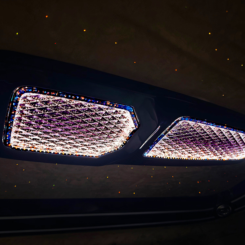 ไฟเพดานผสมผสานเลนส์ออพติคอลคริสตัลของยุโรปและระบบแสงและเงาเซอร์ราวด์ 3 มิติแบบสองชั้น นำเสนอเอฟเฟกต์รัศมีแสงที่นุ่มนวลผ่านเทคโนโลยีการตัดเพชร 16 ชั้น และรองรับอุณหภูมิสีสามสี (3000K/4500K/6000K) และโหมดฉาก RGB 16.8 ล้านสี แหล่งกำเนิดแสงทางอ้อมด้านบนแสดงรูปร่างของหลังคา ไฟนำทางด้านล่างสร้างเอฟเฟกต์แสงแบบแขวน และจังหวะที่ควบคุมด้วยเสียงและโหมดท้องฟ้าเต็มไปด้วยดวงดาวกำหนดนิยามใหม่ของห้องนั่งเล่นธุรกิจเคลื่อนที่ มอบสไตล์ขั้นสูงสุดในการเจรจาสัญญาและการเดินทางกับครอบครัว